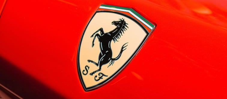 Which brand features a "Prancing Horse" on a yellow shield?